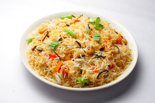 Pulao rice, steamed to perfection, is a fragrant and flavorful dish.